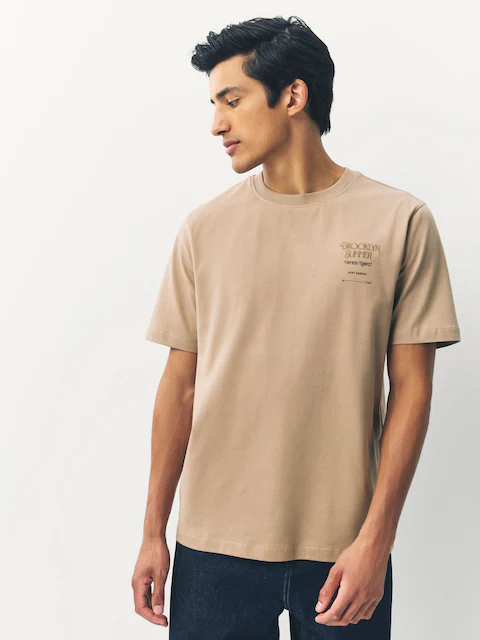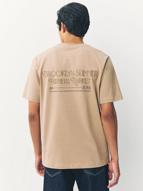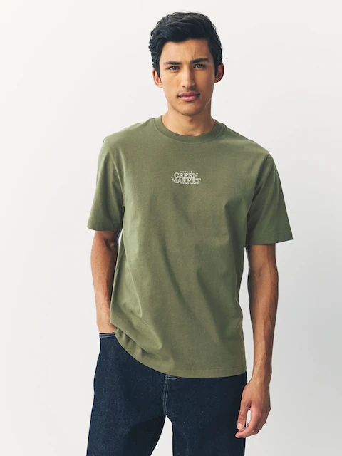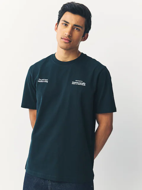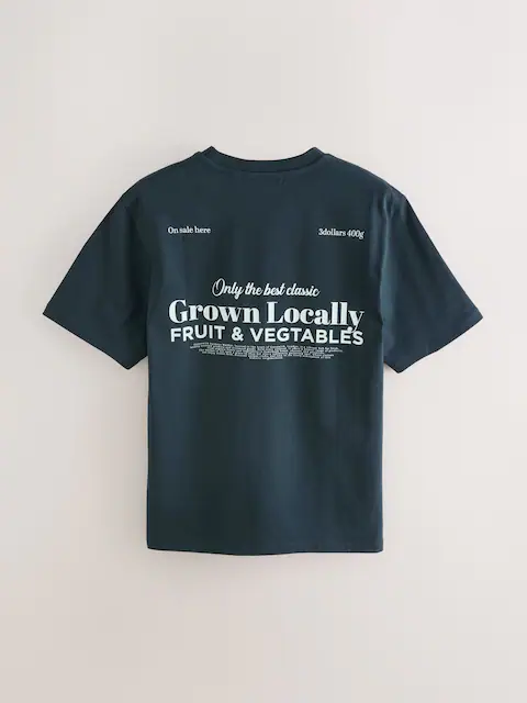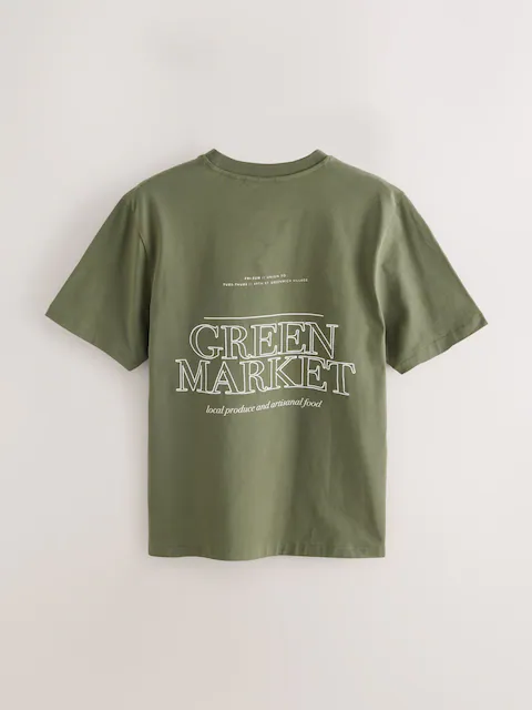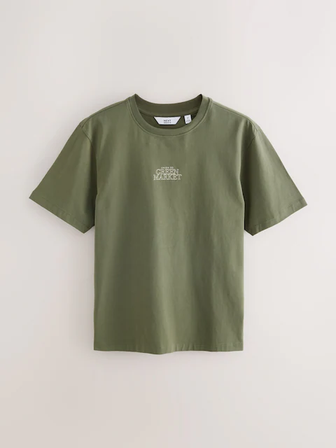 Blue Green Neutral Stone Relaxed Fit Graphic Print Heavyweight T-Shirt